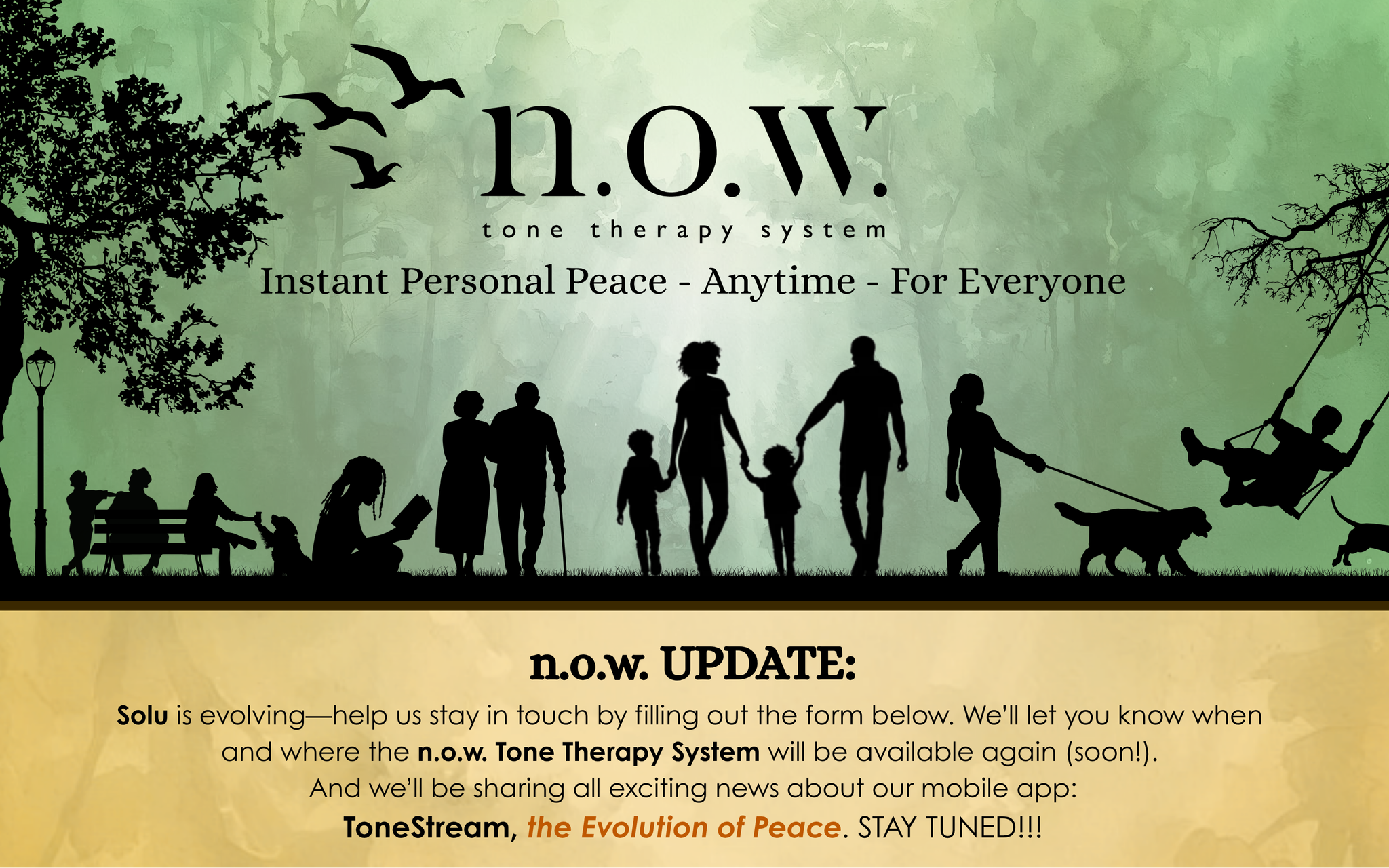 n.o.w.'s sounds are designed to mingle with whatever environment you are in. Follow the gradual fade of the Tones all the way into the ambient sounds around you. Notice the peaceful stillness that is now available to you.